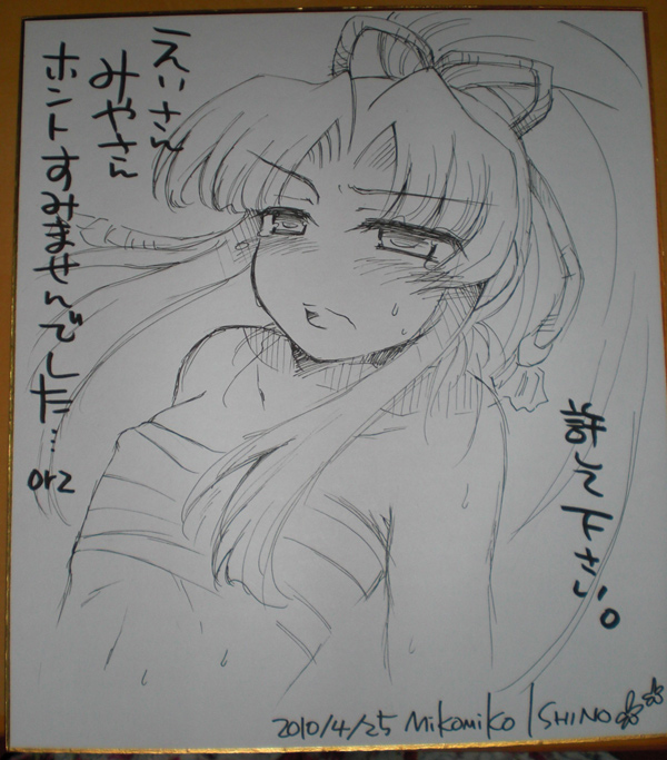 打ち上げの時に酔った勢いでERO色紙を描いたら、後日自分の手元にその写真が送られてくるという羞恥プレイを受けましたw