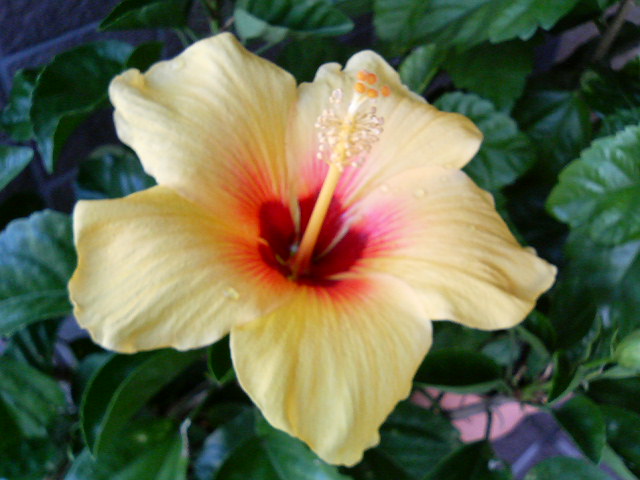 一週間くらい前に実家に帰ったら、鉢植えのハイビスカスが咲いていました。キレイだったので、記念に写真を。