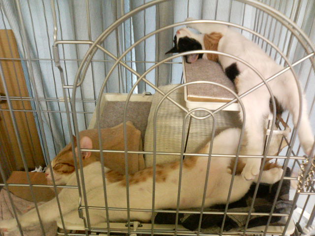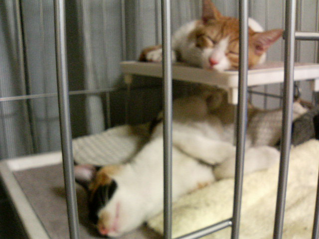 そんなこんなでろくに寝ずに会社に行った私が帰ると、にゃんこ達は何事も無かったかのようにすやすやと眠っておられました。